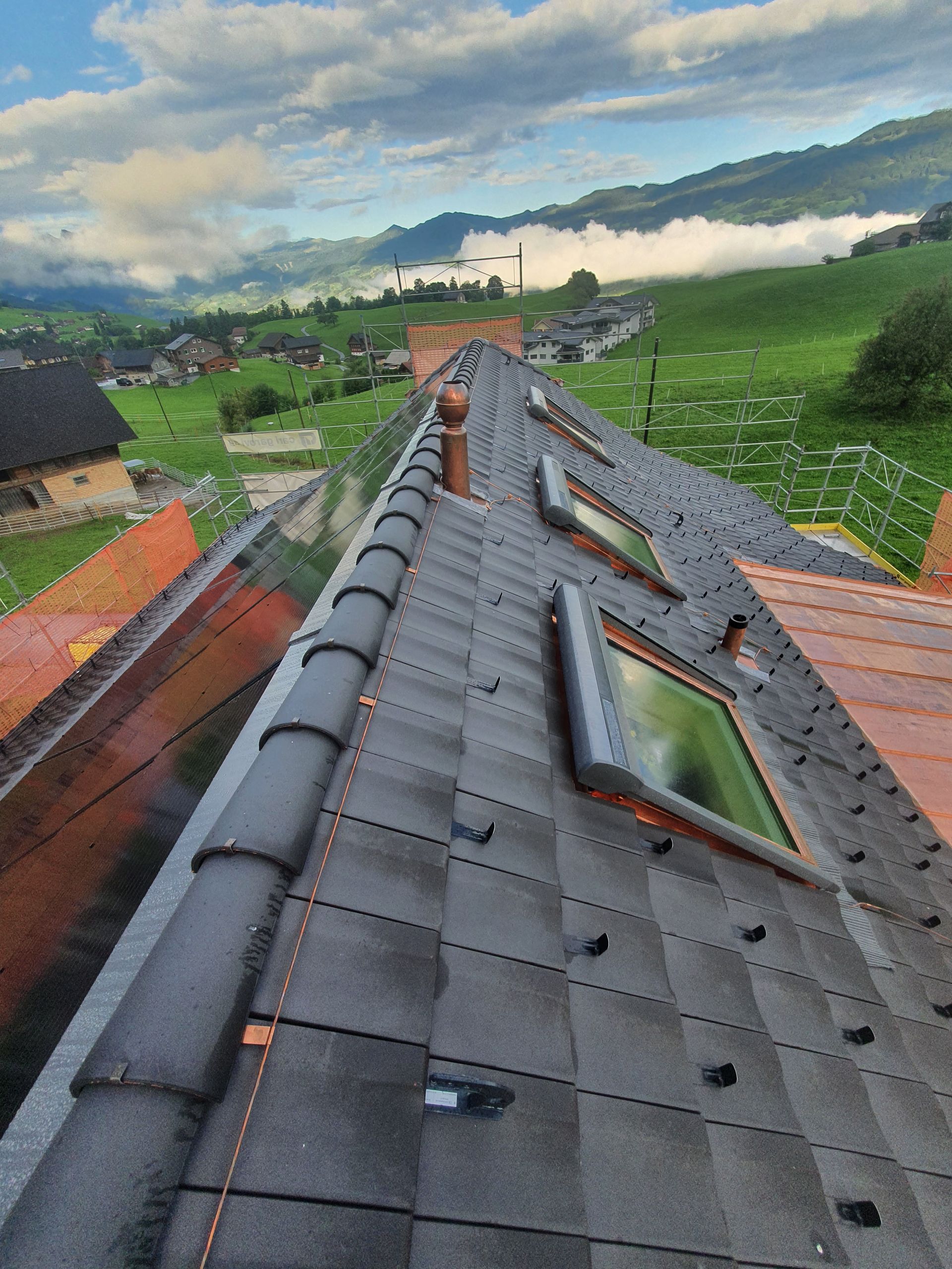 Wir verlegen Ziegel, Eternit, Bleche und Naturschiefer mit höchster Sorgfalt. Unsere erfahrenen Dachdecker und Spengler ermöglichen eine schnelle Renovation alter Dächer, ohne dass Sie sich um Terminabsprachen zwischen verschiedenen Unternehmen kümmern müssen. Anspruchsvolle Dachdeckerarbeit erfordert qualifiziertes Fachpersonal – und genau das bieten wir Ihnen.