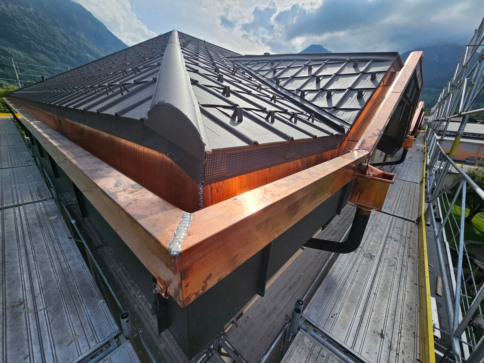 Trotz neuer Arbeitstechniken und moderner Maschinen bleiben viele Bauspenglerei-Schritte wie Kanten, Löten und Falzen Handarbeit. Die Qualität unserer Arbeiten entsteht durch präzise Planung, den Einsatz innovativer Technik und meisterhaftes handwerkliches Können. Wir verarbeiten Bleche millimetergenau und verbinden sie auf der Baustelle sorgfältig, sodass sie zuverlässig Witterungseinflüssen standhalten.